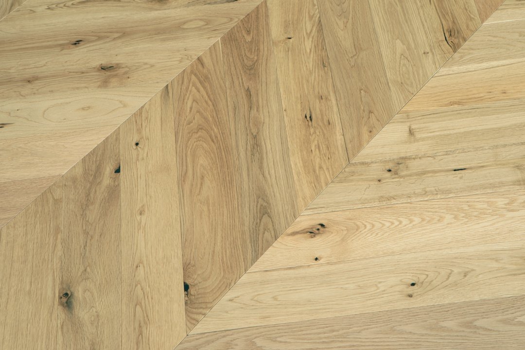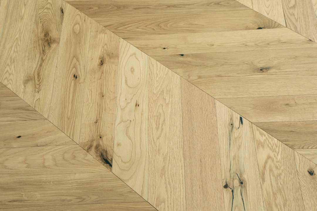 Parchetul stratificat chevron vine cu un plus de eleganta si rafinament prin aspectul de V aliniat. Acest aspect se obtine printr-o taiere speciala.