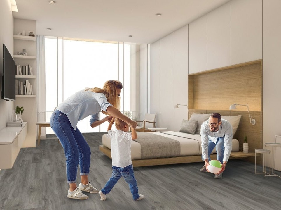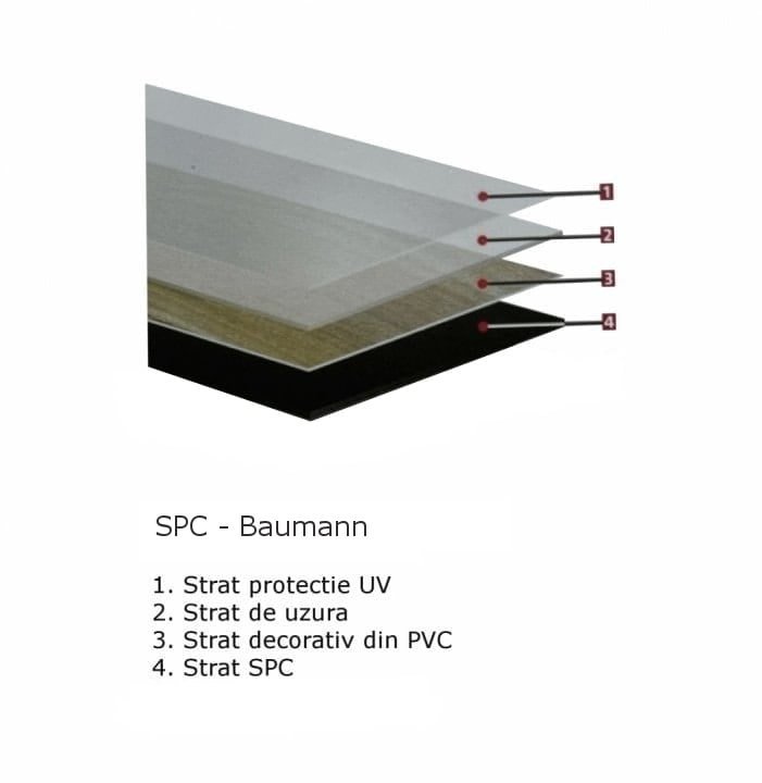 Pardoseala SPC este cea mai noua versiune de LVT, fiind un compozit intre vinil si piatra. Are toate avantajele vinilului, fiind inalterabil la contactul cu apa, cald la atingere, cu textura si aspectul fibrei de lemn dar mult inbunatatit prin introducerea prafului de piatra, care il face mult mai dur si stabil.